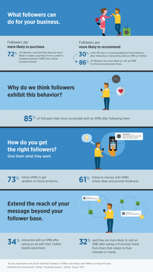 Twitter is continuing to grow and can be a great way for businesses to expand their social reach. Obtaining more followers and using key hashtags allow you to have a relationship with your customers and potential customers, boost awareness of your company, create product awareness, and promote new products. According to Twitter's recent survey, 72 percent of users are more likely to make a purchase from small and medium-sized businesses (SMBs) they follow on Twitter. See more...