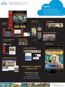 Developing campaigns involving multimedia promotion is always a unique, but exciting challenge that the Blue Sky Marketing team loves to embrace. Below is a case study featuring the hard work of the Johnson Development Corporation and the promotion for its inaugural event "Houston's Largest Home Tour" in 2013 which won a 2014 AMA Houston Crystal Award.